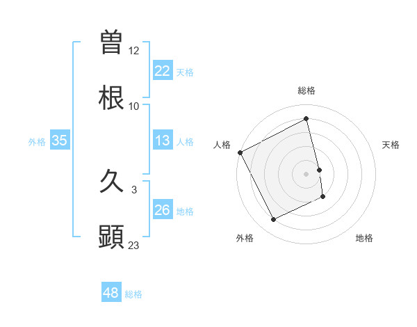 曽根 久顕さんを姓名の画数から五運を鑑定