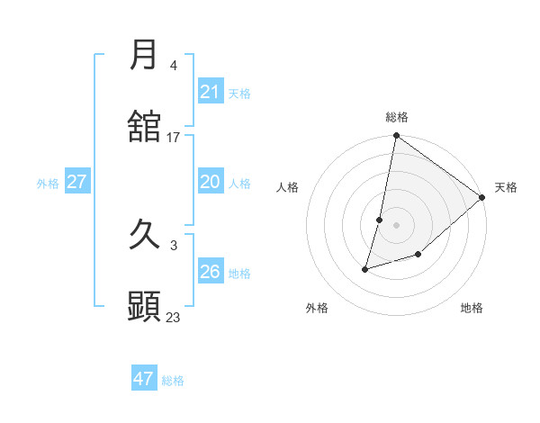 月舘 久顕さんの総格は47画の5点!