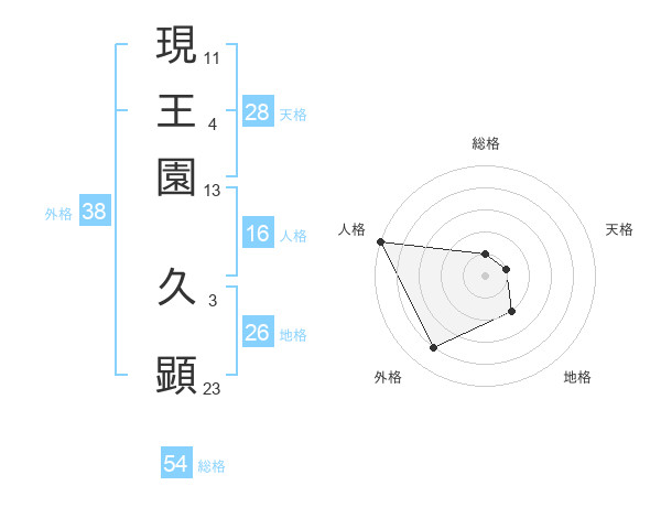 現王園 久顕さんを姓名の画数から五運を鑑定