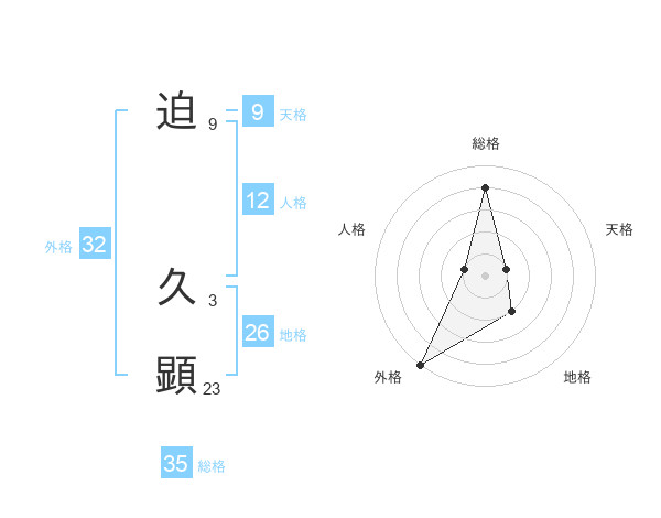 迫 久顕さんの総格は35画の4点!