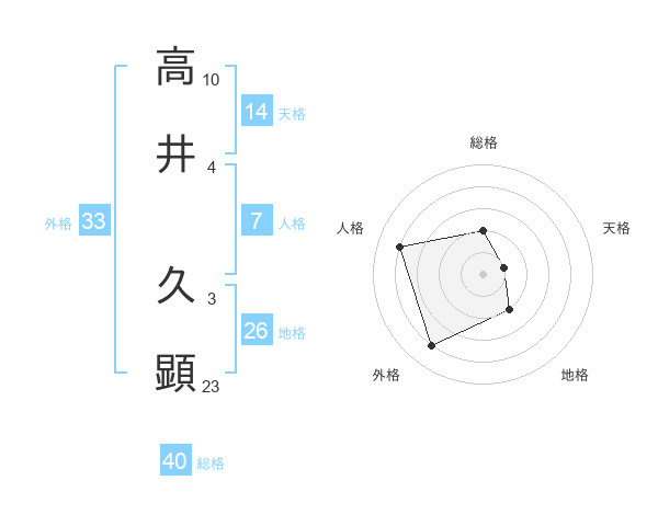 高井 久顕さんの総格は40画の2点!