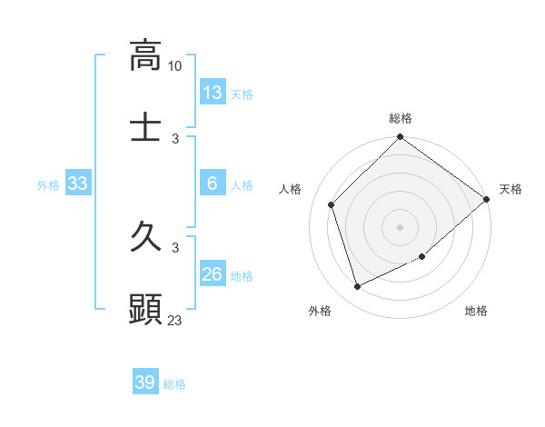 高士 久顕さんの総格は39画の5点!