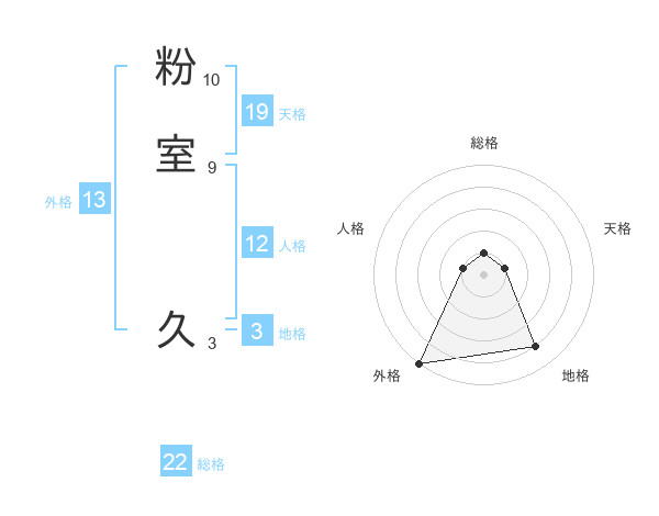 粉室 久さんの外格は13画の5点!