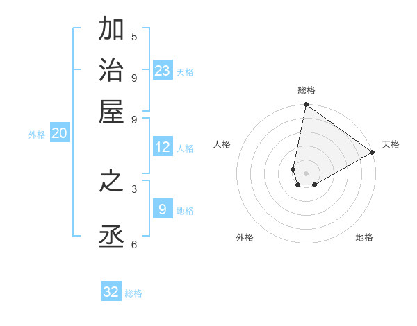 加治屋 之丞さんの天格は23画の5点!