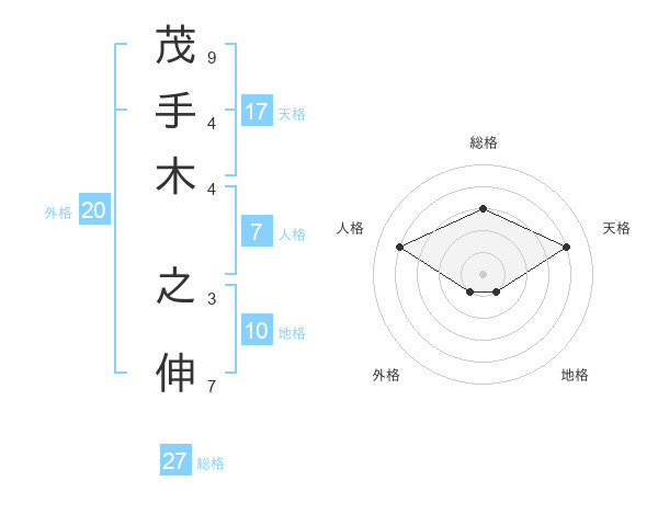 茂手木 之伸さんを姓名の画数から五運を鑑定