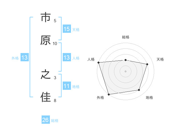 市原 之佳さんの外格は13画の5点!