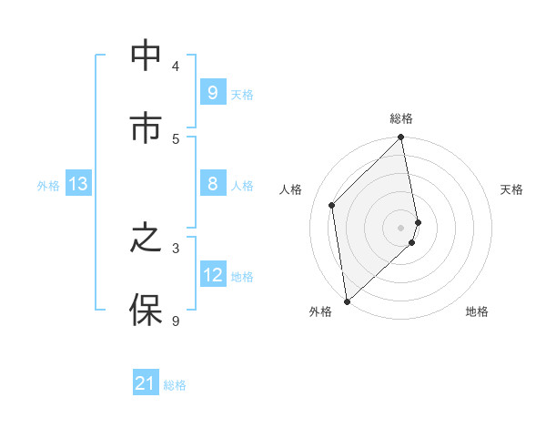 中市 之保さんの総格は21画の5点!