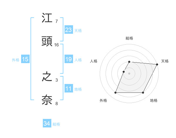 江頭 之奈さんを姓名の画数から五運を鑑定