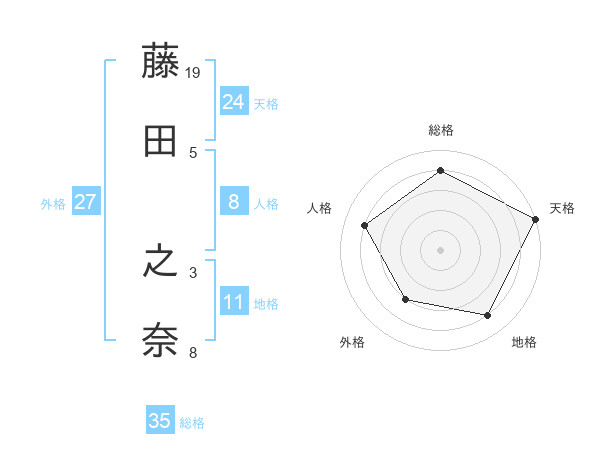 藤田 之奈さんを姓名の画数から五運を鑑定
