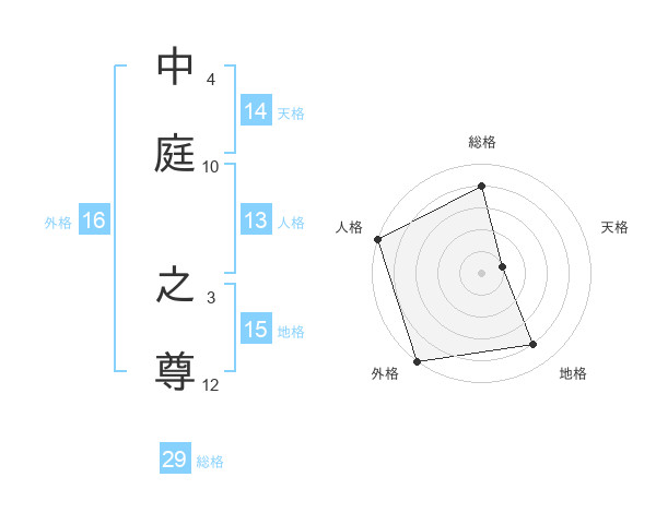 中庭 之尊さんの総格は29画の4点!