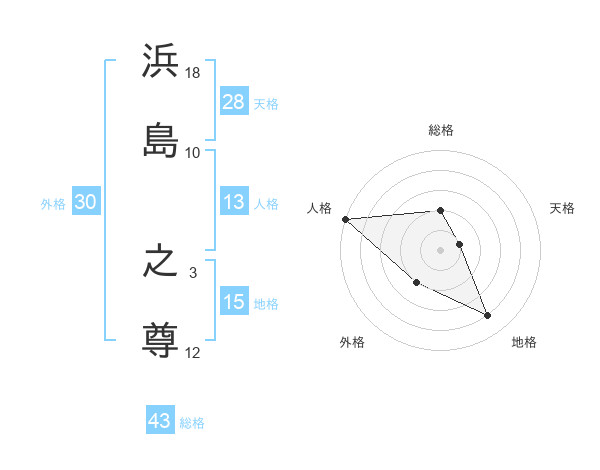 浜島 之尊さんを姓名の画数から五運を鑑定