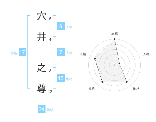 穴井 之尊さんの総格は24画の5点!