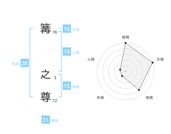 篝 之尊さんの天格は16画の5点!