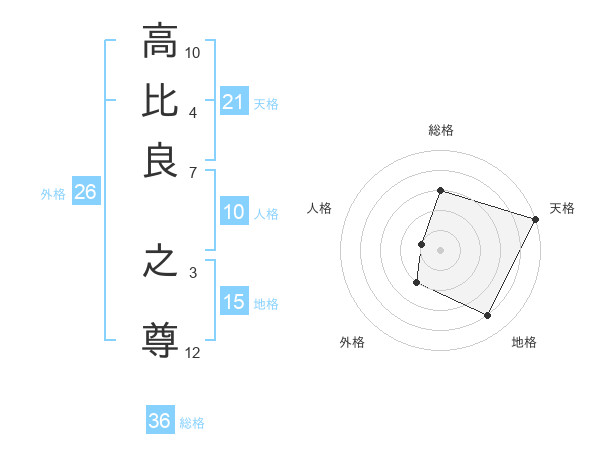 高比良 之尊さんを姓名の画数から五運を鑑定