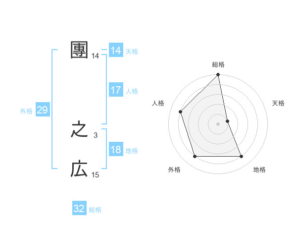 團 之広さんの総格は32画の5点!