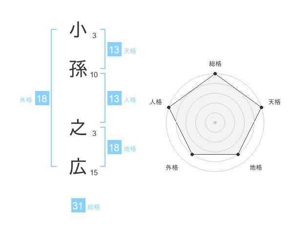 小孫 之広さんの天格は13画の5点!