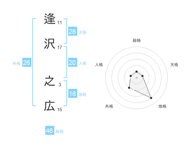 逢沢 之広さんを姓名の画数から五運を鑑定