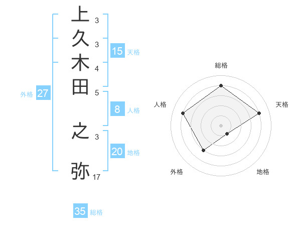 上久木田 之弥さんの総格は35画の4点!