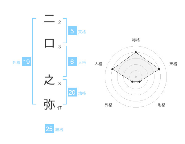二口 之弥さんの総格は25画の4点!