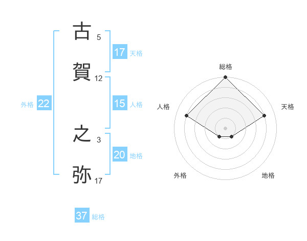 古賀 之弥さんを姓名の画数から五運を鑑定