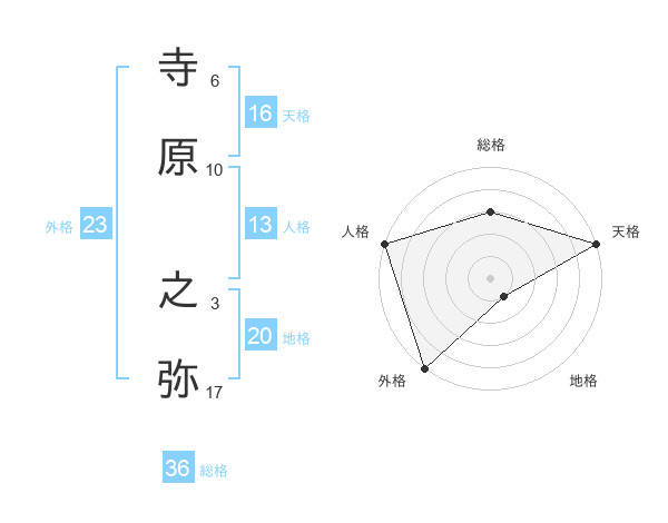 寺原 之弥さんを姓名の画数から五運を鑑定