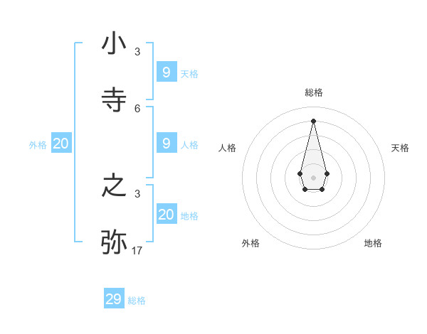 小寺 之弥さんの総格は29画の4点!
