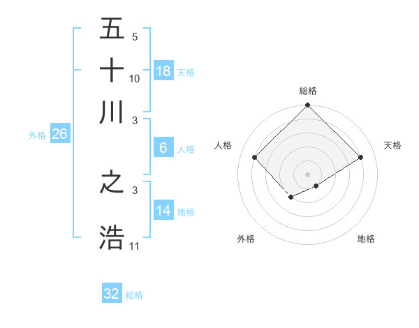 五十川 之浩さんを姓名の画数から五運を鑑定