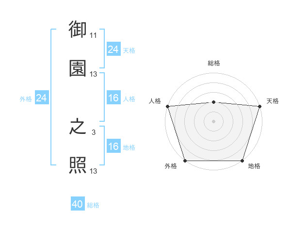 御園 之照さんの総格は40画の2点!