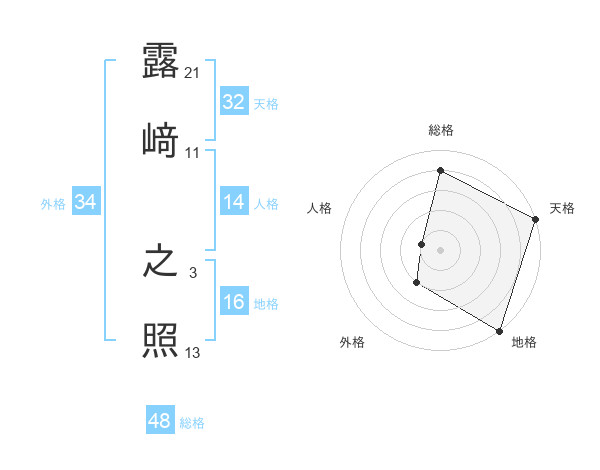 露﨑 之照さんの総格は48画の4点!