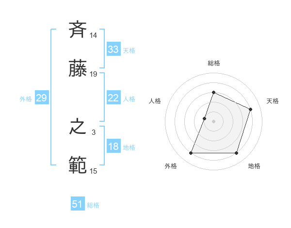 斉藤 之範さんを姓名の画数から五運を鑑定