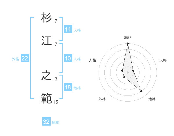 杉江 之範さんの総格は32画の5点!