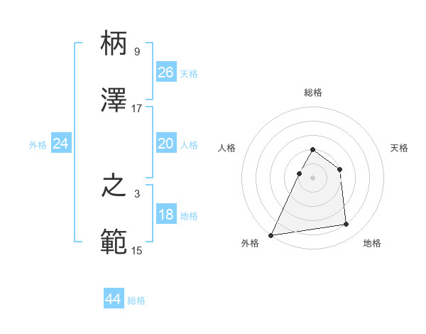 柄澤 之範さんを姓名の画数から五運を鑑定