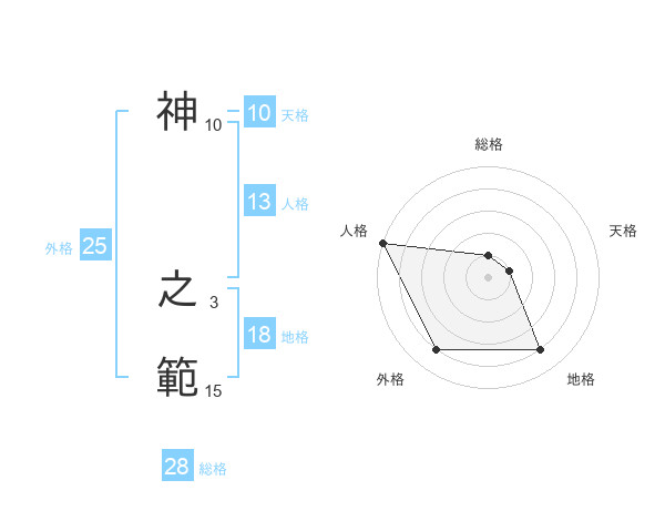 神 之範さんの総格は28画の1点!