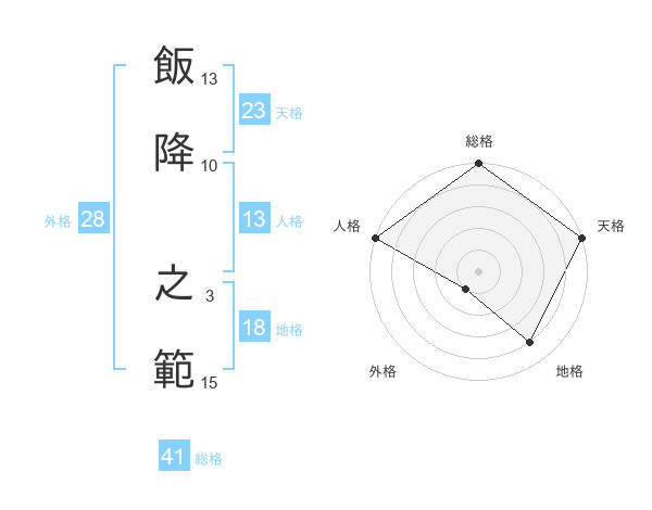 飯降 之範さんの天格は23画の5点!
