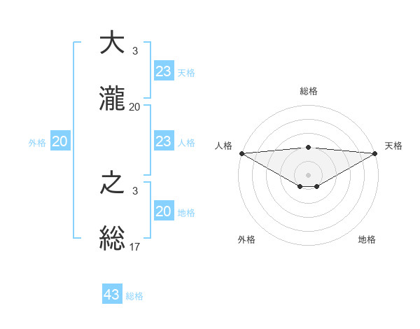 大瀧 之総さんを姓名の画数から五運を鑑定