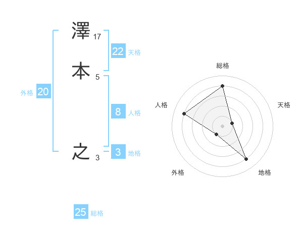 澤本 之さんの天格は22画の1点!