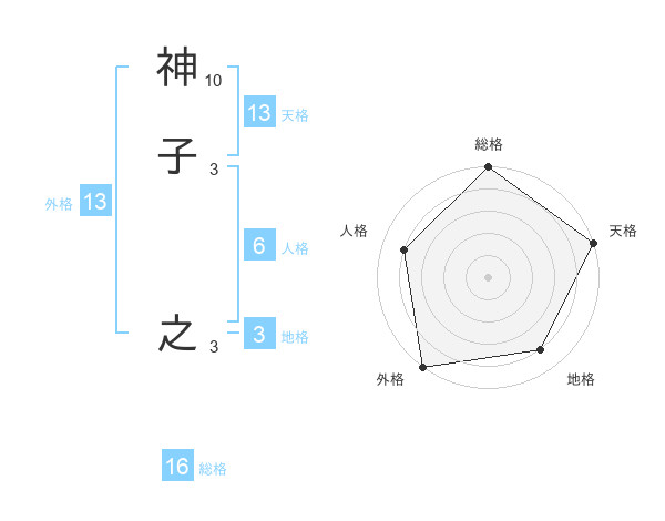 神子 之さんの外格は13画の5点!