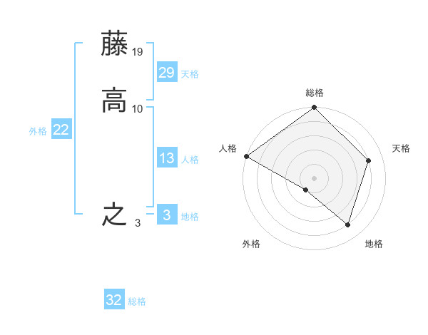 藤高 之さんの総格は32画の5点!