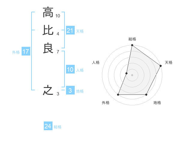 高比良 之さんの天格は21画の5点!