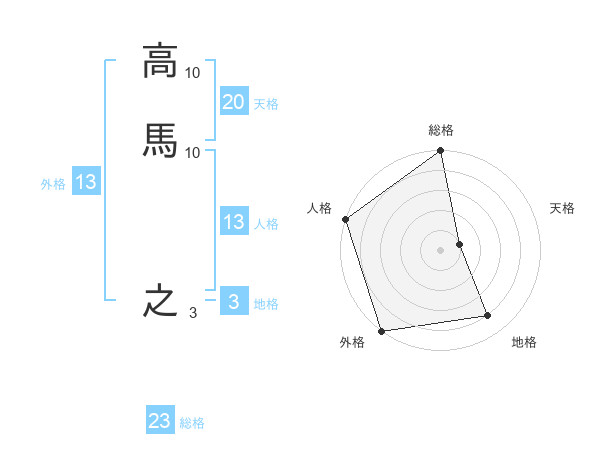 高馬 之さんの外格は13画の5点!