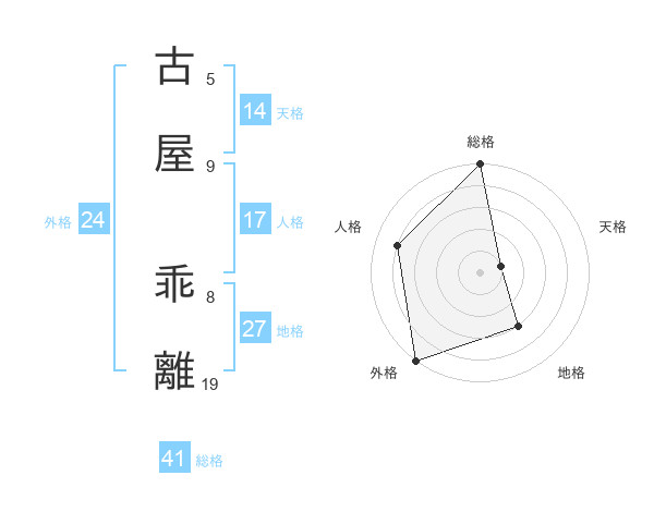 古屋 乖離さんを姓名の画数から五運を鑑定