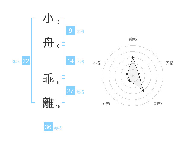 小舟 乖離さんを姓名の画数から五運を鑑定