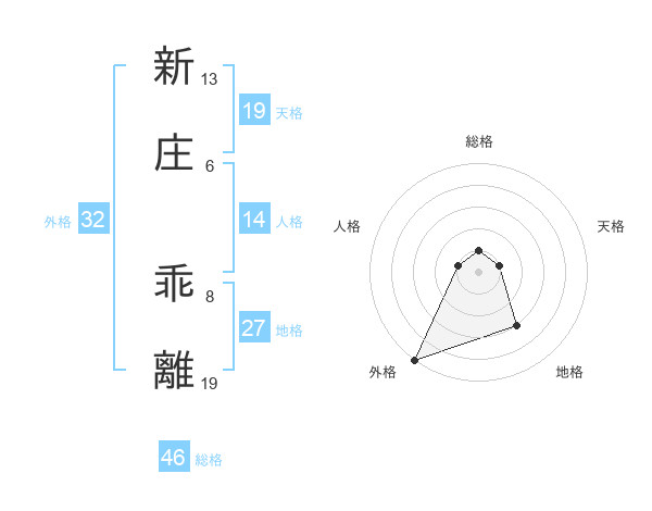 新庄 乖離さんの外格は32画の5点!
