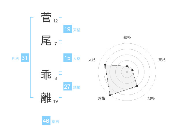 菅尾 乖離さんを姓名の画数から五運を鑑定