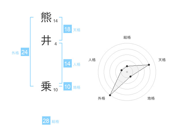 熊井 乗さんの総格は28画の1点!