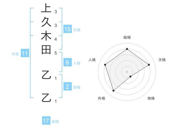 上久木田 乙乙さんを姓名の画数から五運を鑑定