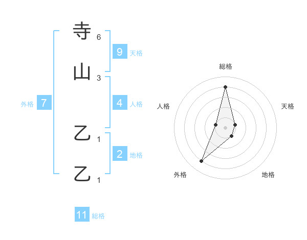寺山 乙乙さんの総格は11画の4点!