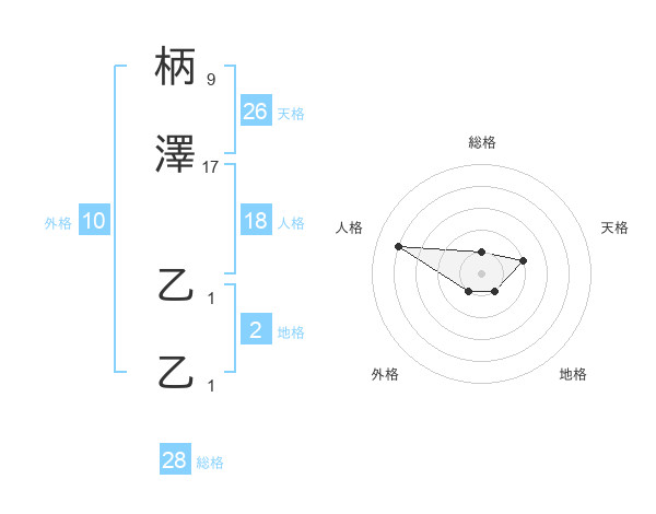 柄澤 乙乙さんを姓名の画数から五運を鑑定