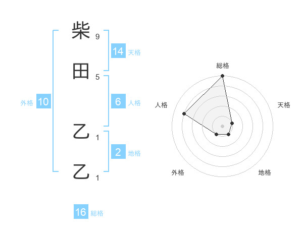 柴田 乙乙さんの総格は16画の5点!