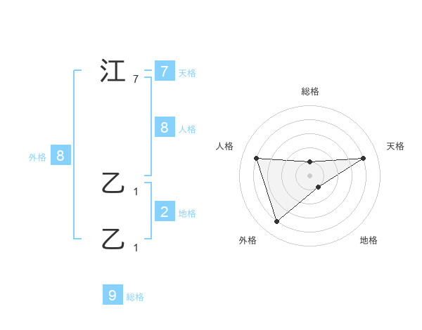 江 乙乙さんの総格は9画の1点!